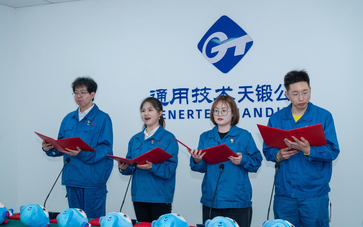 團(tuán)員青年代表的詩朗誦《五四禮贊》,表達(dá)了新時(shí)代的通用技術(shù)天鍛青年立足崗位、矢志創(chuàng)新,拼搏奮斗的決心。