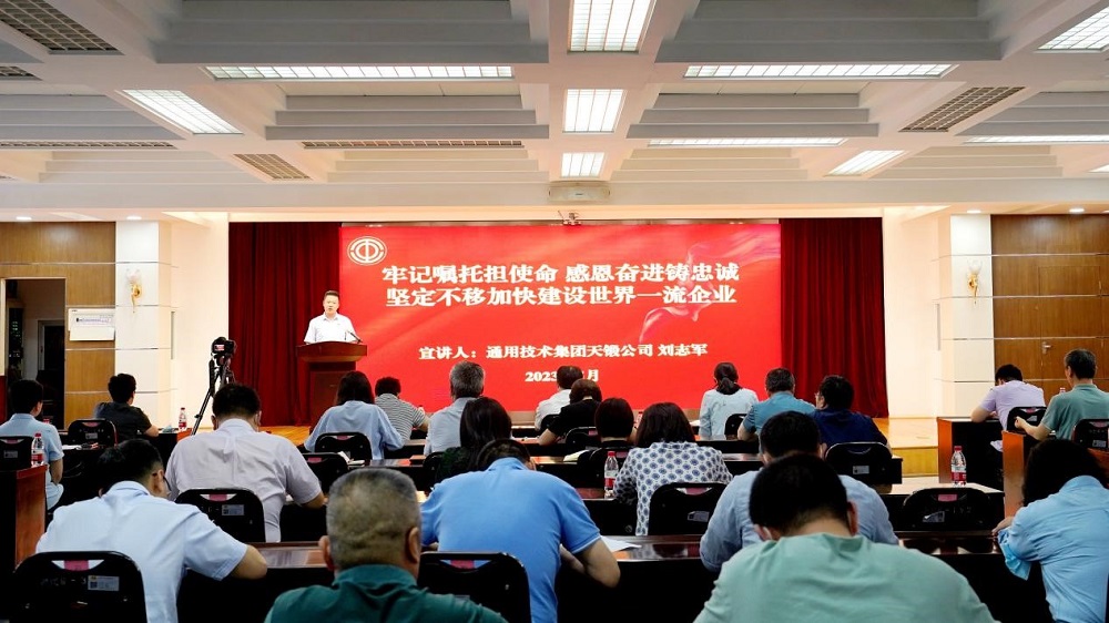 劉志軍作為公司先進代表在大會上作宣講發言。他結合工作經歷用樸素的語言、生動的事例、真摯的情感,向參會人員分享了自己帶領總裝團隊深入落實習近平總書記視察沈陽機床重要指示批示精神,立足崗位錘煉技能、實現夢想的奮斗故事,生動詮釋了勞模精神、勞動精神、工匠精神,充分彰顯天鍛職工主動服務“制造強國”戰略的使命擔當。