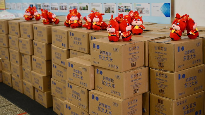春節(jié)“福袋”福利多多,不僅有福臨門寒地東北大米、初萃多用途麥芯面粉、花生油和堅(jiān)果禮盒,還有兩只活潑可愛的兔子玩偶。