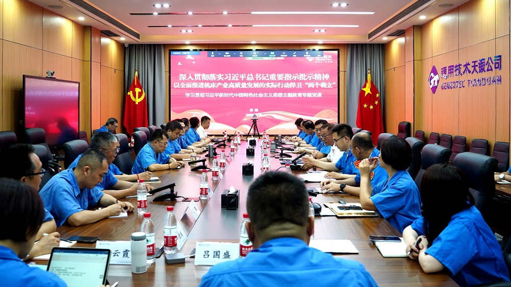 7月17日上午,集團(tuán)總工程師,機(jī)床公司董事長(zhǎng)、黨委書(shū)記唐毅以《深入貫徹落實(shí)習(xí)近平總書(shū)記重要指示批示精神 以全面推進(jìn)機(jī)床產(chǎn)業(yè)高質(zhì)量發(fā)展的實(shí)際行動(dòng)捍衛(wèi)“兩個(gè)確立”》為主題講授主題教育專(zhuān)題黨課。專(zhuān)題黨課的主會(huì)場(chǎng)設(shè)在天鍛公司小淀廠區(qū),采用線上線下相結(jié)合的方式進(jìn)行。集團(tuán)主題教育第四指導(dǎo)組副組長(zhǎng)吳越視頻參會(huì)指導(dǎo)。天鍛公司黨委書(shū)記、董事長(zhǎng)劉國(guó)福主持會(huì)議。