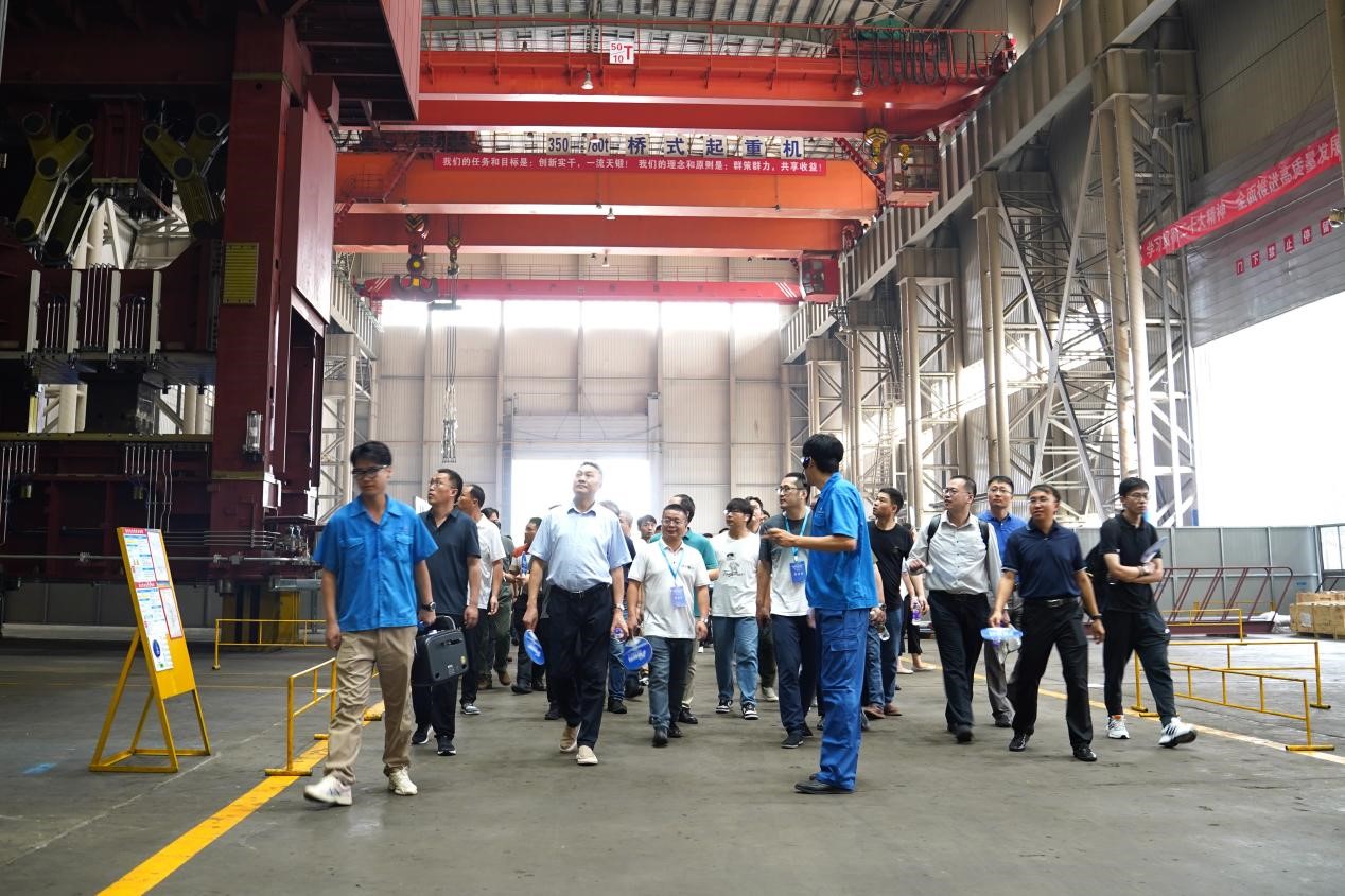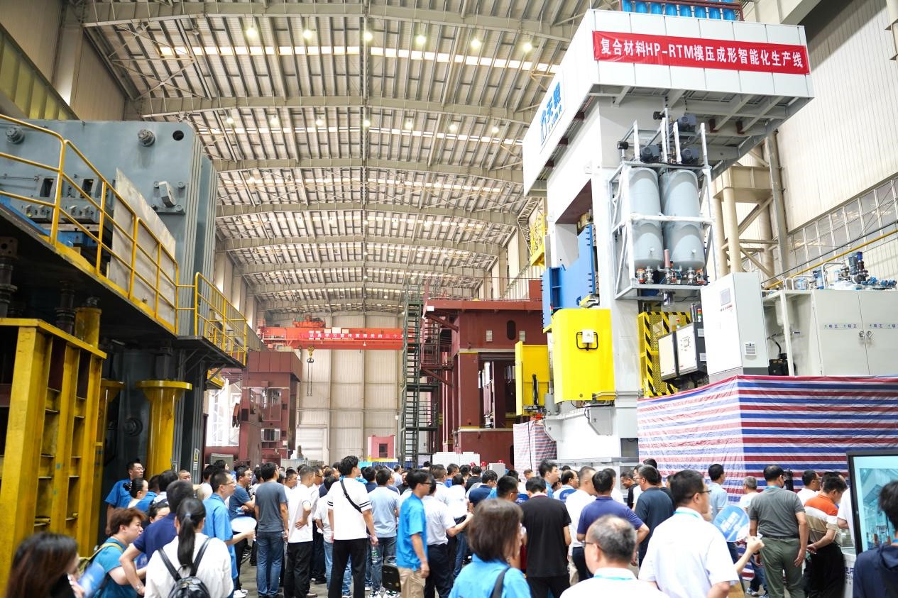 大會期間,嘉賓們參觀了天鍛公司工廠,詳細了解了天鍛公司生產的HP-RTM復合材料壓機模壓生產線,觀看了自動化生產線模型演示畫面,該產線可用于生產碳纖維或玻璃纖維為基材的各類產品,包括新能源汽車電池盒上蓋。通過參觀嘉賓們對公司近年來復合材料產品的性能和技術進步情況有了全面了解。