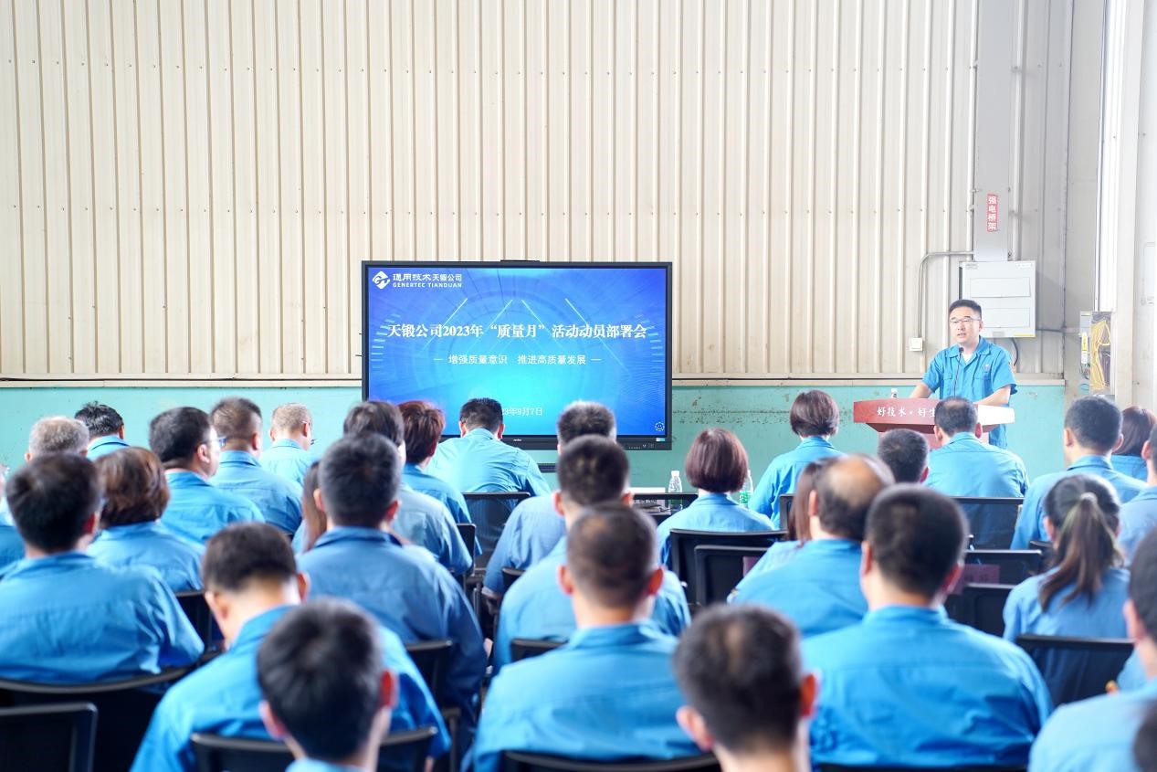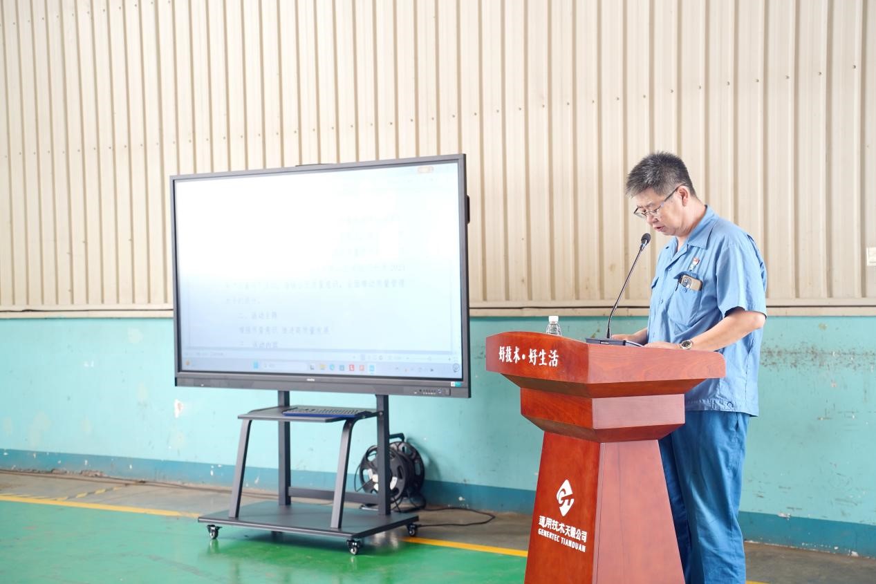 公司董事長、黨委書記劉國福作動員講話并宣布公司“質量月”活動啟動。他提出五點工作要求:一是加強學習,強化質量意識。二是高度重視,以“質量月”活動為契機,全面改進提升公司質量工作。三是營造氛圍,全員參與質量工作。四是聚焦重點環節,夯實產品質量。五是凝共識,求實效,實現活動目標。
