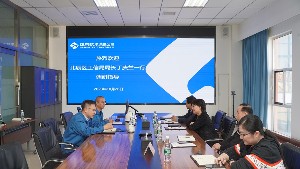 10月26日,北辰區工信局局長丁慶蘭、副局長吳存祥,小淀鎮人大主席周慶耕一行到公司開展調研交流。公司領導劉國福、張敬波接待。