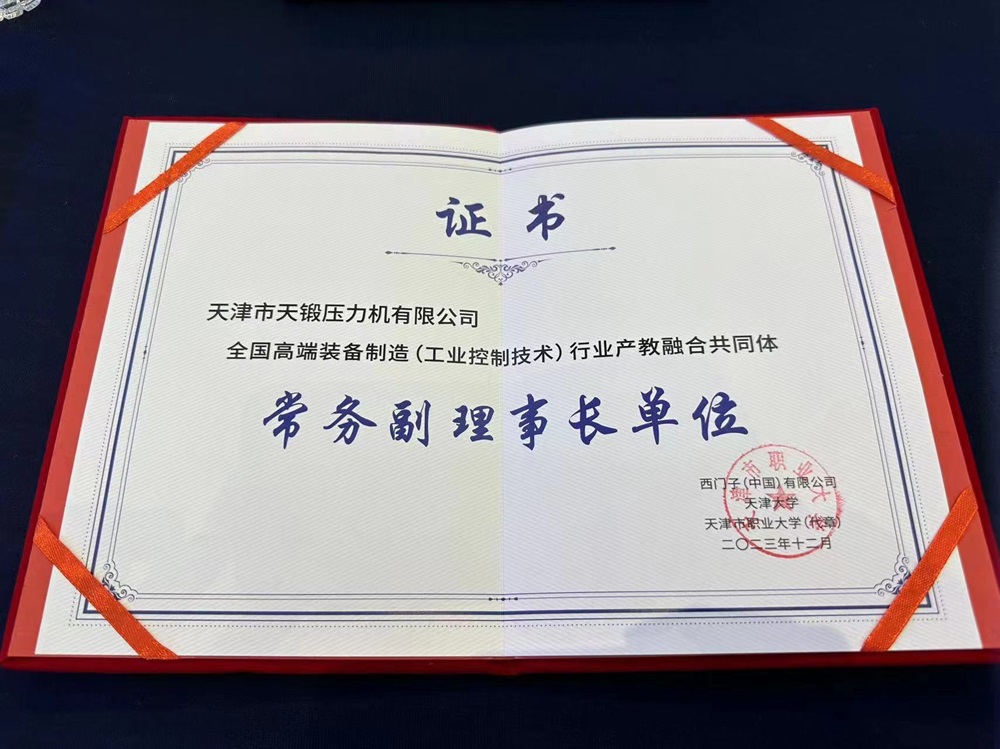 12月16日,全國首個(gè)高端裝備制造(工業(yè)控制技術(shù))行業(yè)產(chǎn)教融合共同體成立大會(huì)在天津召開。該共同體由西門子牽頭國內(nèi)200余家上下游企業(yè)、天津大學(xué)牽頭60余所本科高校、天津市職業(yè)大學(xué)牽頭100余所職業(yè)院校共同發(fā)起成立。天鍛公司當(dāng)選為該共同體常務(wù)副理事長單位。