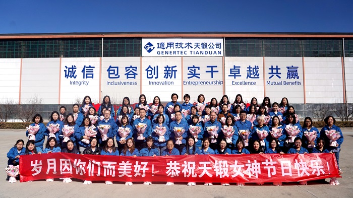 手捧鮮花集體合影,拍出“天鍛最美”照片。
