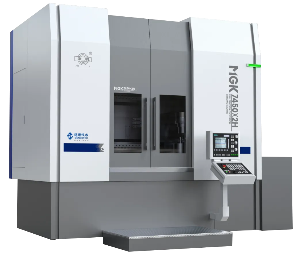 該產品適用于機床、模具、軸承、閥門和機械制造業的精密盤類、環類、套類、回轉支承等零部件精密磨削加工。產品設計緊湊,布局合理,配置自研力矩電機直驅靜壓工作轉臺,應用內反饋油膜自平衡技術、內油腔正壓防護技術、熱平衡及精度補償技術,整機具有固有頻率高、運行穩定、精度保持性好、運輸便利和安裝快速的特點。定制化人機界面,包含多種磨削加工宏程序和工藝參數,簡單易學,操作方便,并配置刀庫、在線測量、磨削震動檢測等功能。