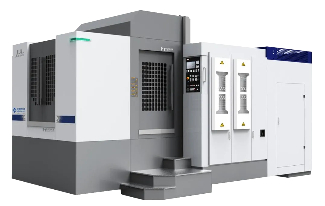 該產品適用于汽車、新能源等行業的箱體、殼體、盤類、異形零件的柔性加工,由MDH50臥式加工中心和圓周式立體自動料倉組成,具有2層10工位托板容納能力,自動化程度高、可靠性強、操作簡便。Z軸配置時柵導軌,為該智能化創新產品的首次應用展示。