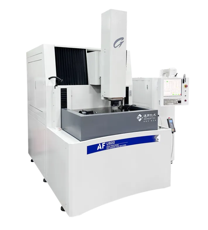 該產品是針對刀片模具等高端模具開發的全能型電加工產品,具有自主知識產權。產品采用無懸伸高剛度倒T形床身;搭載具有多電流波形輸出功能的低損耗節能型脈沖電源;配置分辨率0.1μm的高精度光柵尺進行全閉環控制,可實現模具鋼Ra0.08μm鏡面加工、硬質合金Ra0.15μm高質量加工。自研的多邊形找正功能(發明專利)解決了刀片模具加工領域痛點,加工刀片模具時位置精度控制在3μm以內,表面質量達到國際先進水平。