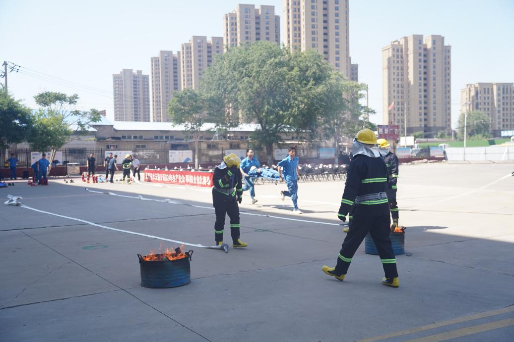 演練現場模擬由起重傷害引發的火災場景。公司董事長、黨委書記劉國福接到報告后立即啟動公司應急預案,成立現場指揮部并擔任總指揮,指定公司總經理、黨委副書記劉林志擔任副總指揮。按照公司應急預案,現場指揮部發布各項應急行動指令,各救援組緊張有序地實施應急救援行動。