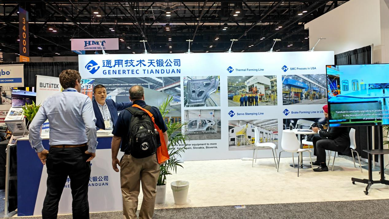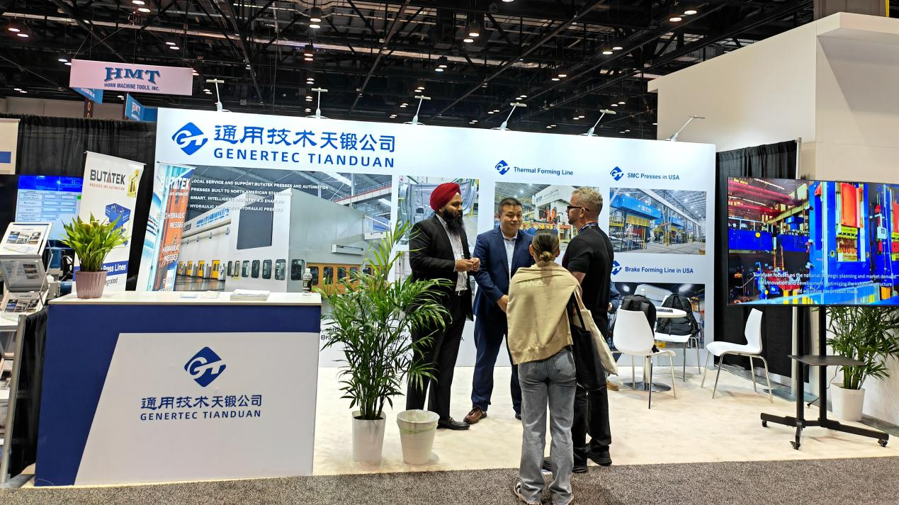 參觀者對公司的全伺服節能型成形機床和智能化成套生產線表現出濃厚興趣。公司副總經理王世明和市場營銷部北美大區負責人與來自世界各地的專業人士進行了深入的技術探討和工藝論證。通過展會的溝通,不僅加深了國外客戶對天鍛公司綜合實力的了解,也為公司后續的北美市場拓展和國際合作奠定了良好基礎。