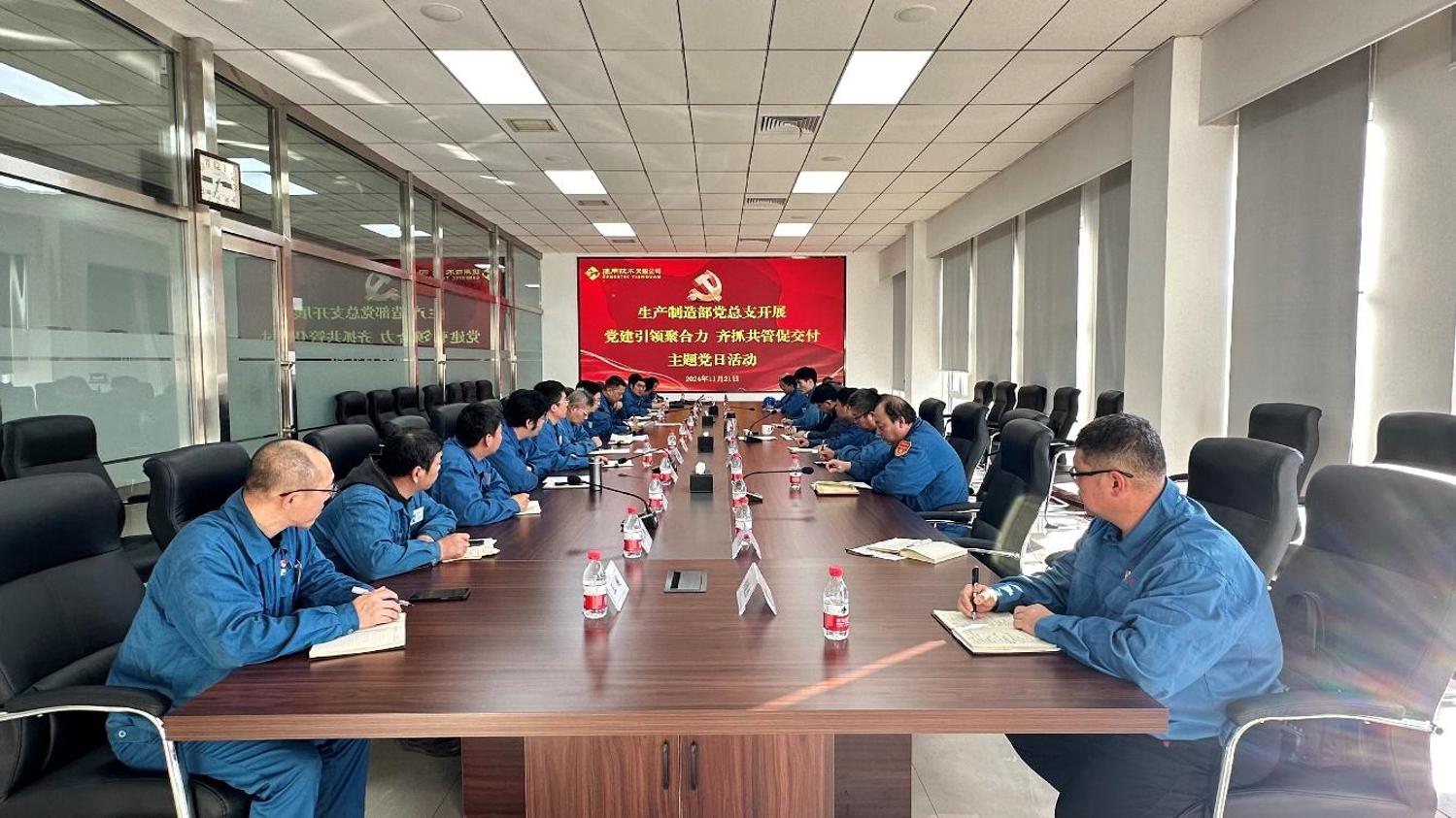 11月21日下午,生產制造部黨總支開展“黨建引領聚合力 齊抓共管促交付”主題黨日活動,機床公司黨委委員、副總經理李敢作為基層聯系點領導參加活動。活動中,李敢同志要求各位黨員持續深入學習貫徹黨的二十屆三中全會精神,針對加快技術改造和加強生產過程安全環保管理等提出具體要求,并對生產過程中的痛點難點問題給出了指導意見,希望大家團結協作、奮力拼搏,為機床板塊高質量發展貢獻力量。